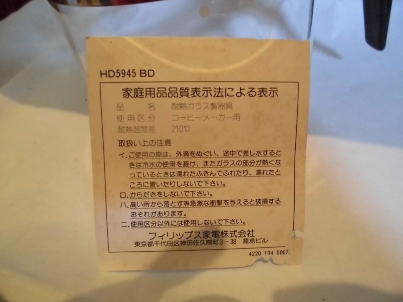 (未使用品) PHILIPS フィリップス コーヒーメーカー用ガラス容器 HD5114/15